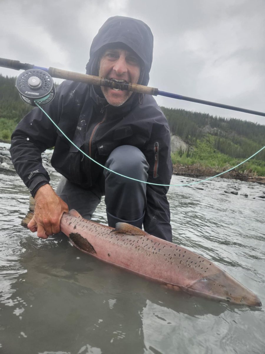 Join us for an introduction to fly fishing. This comprehensive lesson will equip you with everything you need to know to successfully catch Copper River red salmon on your own. We will cover tackle selection, casting, drifting, hooking and fighting fish. In addition, you will learn how to read river water and where to fish for red salmon. Your guide will also teach you how to cast and be able to troubleshoot any technical problems. This is an entry-level class suitable for all ages. Experienced anglers who are new to the Klutina River will learn the most productive fishing holes in the area.