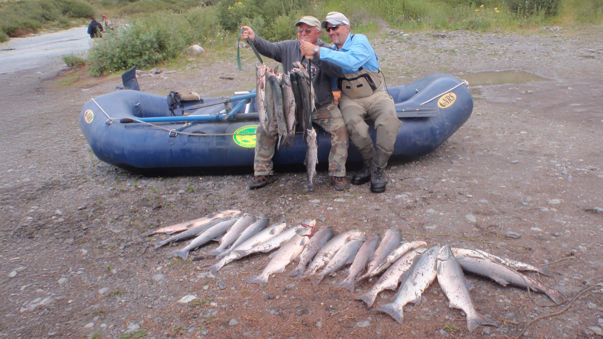 The red salmon spend most of their life migrating offshore in the saltwater and return to their home rivers to spawn upon reaching maturity. Red salmon feed on really small stuff like plankton, krill and tiny shrimp. The feeding habits of red salmon make them the least aggressive of the salmon, maybe because of their inherent position in the food chain. In fact, red salmon do not usually “bite” at all. About 75% of the time they are not biting when you hook them. In most cases, we catch red salmon using a technique called flossing: the fishing line drifts into the fish’s mouth and gets pulled tight, incidentally setting the hook